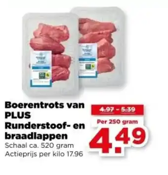 Boerentrots van PLUS Runderstoof en braadlappen aanbieding en online acties bij PLUS