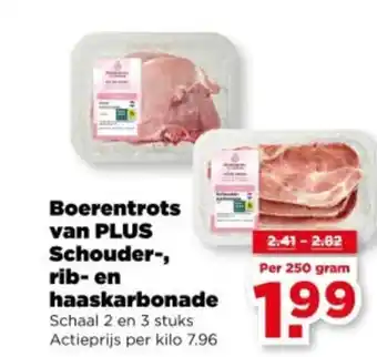 Boerentrots van Plus Schouder-, rib-en haaskarbonade korting bij PLUS