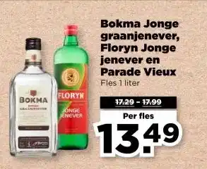 Bokma Jonge graanjenever, Floryn Jonge jenever en Parade Vieux aanbieding bij PLUS