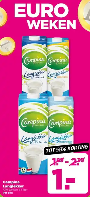 Campina Langlekker Alle pakken à 1 liter Per pak, TOT 58% KORTING, 199-239 EURO