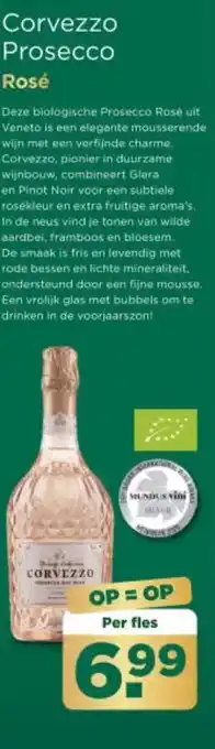 De Corvezzo Prosecco Rosé is momenteel met korting verkrijgbaar bij PLUS. Hier vind je alle details over prijs, geldigheidsduur en actievoorwaarden. Vergeet niet om ook andere aanbiedingen en deals voor Corvezzo Prosecco Rosé te bekijken zodat je zeker weet dat je de beste prijs betaalt. De kortingsactie loopt van 29-04-2026 tot 05-05-2026. Is de actie inmiddels verlopen? Geen zorgen, vergelijk dan soortgelijke aanbiedingen of volg de productcategorie voor toekomstige prijsverlagingen. Zo koop je altijd met voordeel.Veelgestelde vragen over Corvezzo Prosecco Rosé