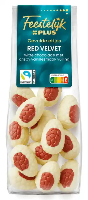 Feestelijk PLUS Paaseitjes wit Red Velvet aanbieding bij PLUS – binnenkort verwacht