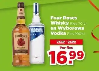 Four Roses Whisky Fles 70 cl en Wyborowa Vodka Fles 100 cl aanbieding bij PLUS – binnenkort verwacht