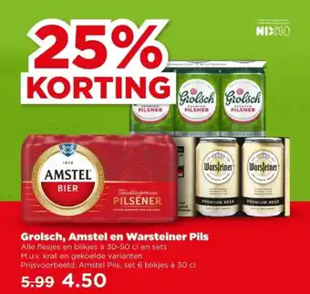 Grolsch, Amstel en Warsteiner Pils aanbieding bij PLUS