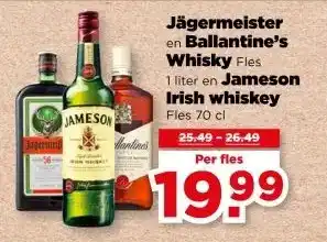 Jägermeister en Ballantine's Whisky en Jameson Irish whiskey aanbieding bij PLUS