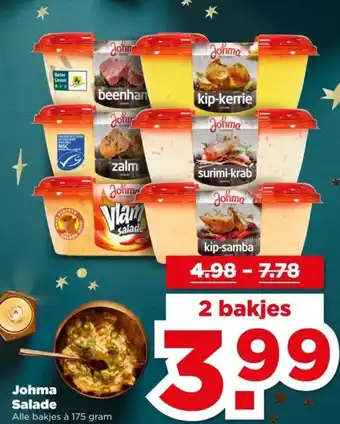 PLUS biedt naast de Johma Salade een ruime collectie producten aan. Houd de wekelijkse PLUS folder in de gaten om de beste aanbiedingen en acties te vinden. Naast Johma Salade, kunt u ook de volgende aanbiedingen vinden: Johma salade, Johma salade & Johma Salade tonijn.