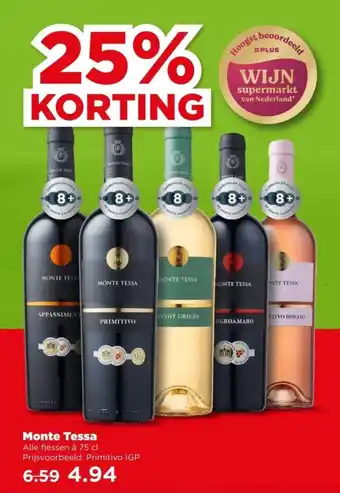 De prijs van de Monte Tessa kan ook teruggevonden worden hierboven op de pagina, samen met de datum van wanneer de aanbieding beschikbaar is. Ook kun je de prijzen in de huidige PLUS folder of op de PLUS website controleren. De aanbiedingen verzekeren je van het kopen van de PLUS producten voor de laagste prijs.