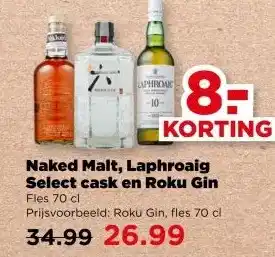 Koop Naked Malt, Laphroaig Select cask en Roku Gin Fles 70 clSelect cask en Roku Gin komende week met korting