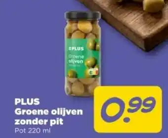 PLUS Groene olijven zonder pit - Pot 220 ml - 0.99