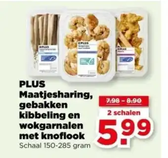 PLUS Maatjesharing, gebakken kibbeling en wokgarnalen met knoflook 150 - 285 g