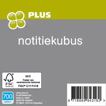 PLUS Notitiekubus 700 vel Per 1 st 1+1 gratis