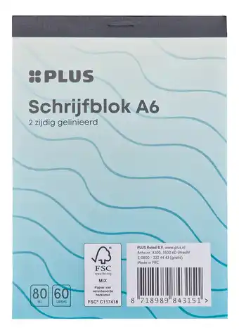 PLUS Schrijfblok A6 80 vel Per 1 st 1+1 gratis
