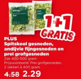PLUS Spitskool gesneden, andijvie fijngesneden en prei grofgesneden 2 x 400 gram 1+1 gratis