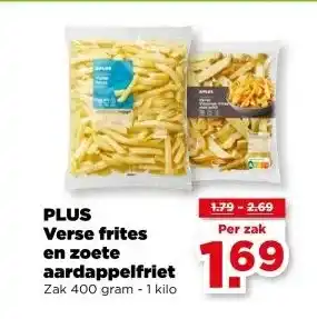 PLUS Verse frites en zoete aardappelfriet aanbieding en online acties bij PLUS