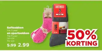 Softsokken Pak 3 paar en sportsokken Pak 5 paar korting bij PLUS