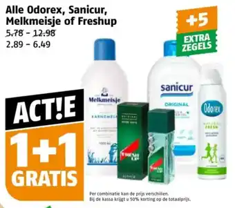 Alle Odorex, Sanicur, Melkmeisje of Freshup 1+1 GRATIS
