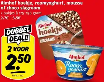 Almhof hoekje, roomyoghurt, mousse of choco slagroom aanbieding bij Poiesz