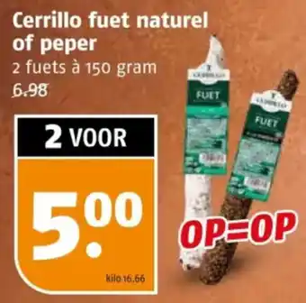 Cerrillo fuet naturel of peper aanbieding en online acties bij Poiesz