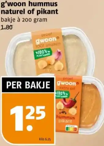 G'woon hummus naturel of pikant aanbieding en online acties bij Poiesz