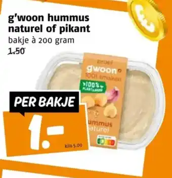 G'woon hummus naturel of pikant 200 g