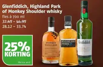 Glenfiddich, Highland Park of Monkey Shoulder whisky fles 700 ml, 25% KORTING