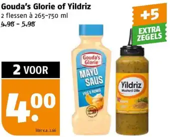Kies nu uit Gouda's Glorie of Yildriz Mosterd Dille saus en profiteer van de actie 2 VOOR 5.00 liter v.a. 2.66 +5 EXTRA ZEGELS. Gouda's Glorie staat bekend om de heerlijke mayonaise en Yildriz om de verrassende smaken. Met deze actie kun je voordelig genieten van jouw favoriete saus. De Mosterd Dille variant is perfect voor bij de barbecue of als dip voor snacks. Verzamel daarnaast nog eens 5 EXTRA ZEGELS bij aankoop van 2 flessen. Mis deze kans niet en haal jouw voorraad saus in huis. Geniet van de heerlijke smaken van Gouda's Glorie of Yildriz en profiteer van deze geweldige aanbieding!