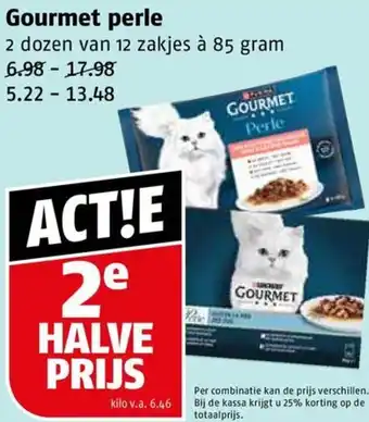 Verwen uw kat met Gourmet Perle, nu extra voordelig! Bij aankoop van 2 dozen van 12 zakjes à 85 gram, betaalt u slechts de helft van de prijs. Normaal kost een doos tussen de 6.98 en 17.98, maar met deze actie betaalt u slechts 5.22-13.48 per doos. Dat is een kiloprijs vanaf 6.46. Profiteer nu van deze geweldige aanbieding en geef uw kat de heerlijke smaken van Gourmet Perle. Let op: de prijs kan per combinatie verschillen, maar bij de kassa krijgt u nog eens 25% korting op de totaalprijs. Haal nu uw voorraad Gourmet Perle in huis en geniet van tevreden spinnende katten!