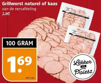 De prijs van de Grillworst naturel of kaas kan ook teruggevonden worden hierboven op de pagina, samen met de datum van wanneer de aanbieding beschikbaar is. Ook kun je de prijzen in de huidige Poiesz folder of op de Poiesz website controleren. De aanbiedingen verzekeren je van het kopen van de Poiesz producten voor de laagste prijs.