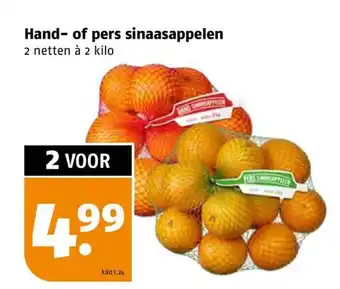 Hand- of pers sinaasappelen 2 netten à 2 kilo 2 VOOR kilo 1.24