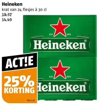 Heineken krat van 24 flesjes 30 cl met 25% korting!