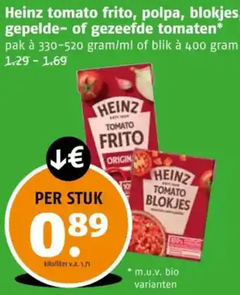 Heinz tomato frito, polpa, blokjes gepelde- of gezeefde tomaten korting bij Poiesz