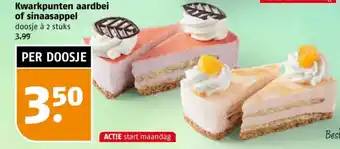 ACTIE start maandag met een speciale aanbieding: Kwarkpunten aardbei of sinaasappel doosje à 2 stuks voor slechts 3.50 PER DOOSJE! Geniet van deze heerlijke en gezonde snack vol smaak. De kwarkpunten zijn perfect als tussendoortje of als dessert. De romige kwark gecombineerd met de zoete smaak van aardbei of sinaasappel zorgt voor een ware smaaksensatie. Bestel nu jouw doosje en verwen jezelf met deze lekkernij. Of verras je vrienden en familie met deze heerlijke traktatie. Mis deze kans niet en profiteer van de scherpe aanbieding. Haal snel jouw Kwarkpunten aardbei of sinaasappel in huis en geniet van de pure verwennerij!