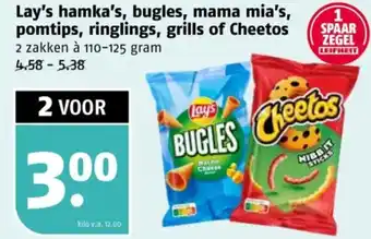 Lay's hamka's, bugles, mama mia's, pomtips, ringlings, grills of Cheetos aanbieding bij Poiesz – binnenkort verwacht