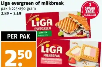 Liga evergreen of milkbreak pak à 225-250 gram voor 2,50