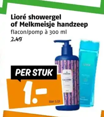 Lioré showergel of Melkmeisje handzeep korting bij Poiesz