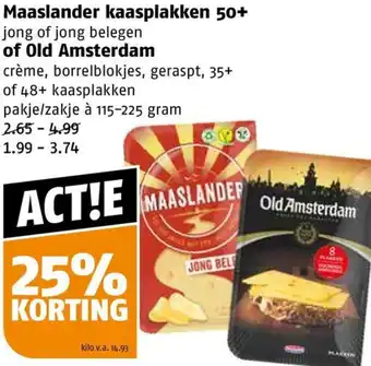 Koop Maaslander kaasplakken 50+ of Old Amsterdam komende week met korting