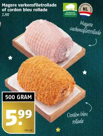 Magere varkensfiletrollade of cordon bleu rollade aanbieding en online acties bij Poiesz