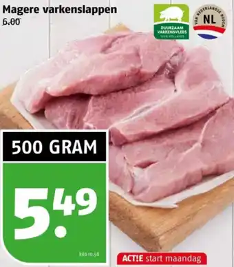 Geniet van malse magere varkenslappen van 100% duurzaam Hollands varkensvlees. Deze heerlijke varkenslappen zijn verpakt in een handige verpakking van 500 gram en zijn nu verkrijgbaar voor slechts 5.49. Profiteer van deze scherpe aanbieding, want normaal kost een kilo 10.98. Het vlees is afkomstig van Nederlandse varkens en is van hoge kwaliteit. De magere varkenslappen zijn perfect voor het bereiden van diverse gerechten en zullen zeker in de smaak vallen bij het hele gezin. Deze aanbieding is geldig vanaf maandag, dus zorg ervoor dat je er op tijd bij bent. Haal nu jouw magere varkenslappen in huis en geniet van een heerlijke maaltijd met dit smaakvolle en malse vlees.
