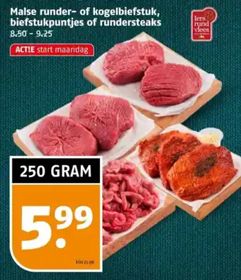 Malse runder- of kogelbiefstuk, biefstukpuntjes of rundersteaks korting bij Poiesz