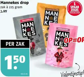 Originele Mannekes drop zak à 225 gram voor 1.99 met spaarzegel