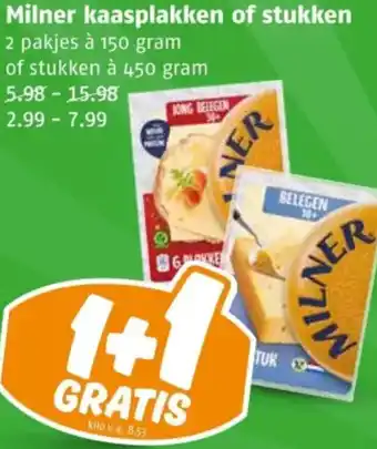 Milner kaasplakken of stukken 2 pakjes à 150 gram voor 5.98-15.98