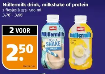 Müllermilk drink, milkshake of protein 2 flesjes voor 3.78