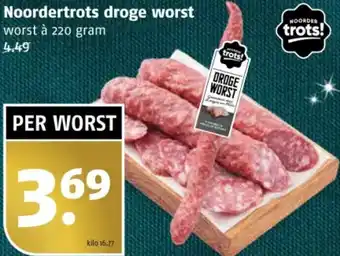 De prijs van de Noordertrots droge worst kan ook teruggevonden worden hierboven op de pagina, samen met de datum van wanneer de aanbieding beschikbaar is. Ook kun je de prijzen in de huidige Poiesz folder of op de Poiesz website controleren. De aanbiedingen verzekeren je van het kopen van de Poiesz producten voor de laagste prijs.