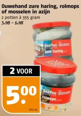 Geniet van de heerlijke smaak van Ouwehand zure haring, rolmops of mosselen in azijn met deze aanbieding. Je kunt kiezen uit 2 potten à 355 gram voor slechts 5.98-6.98. Probeer ook de SeaYou Qu zure haring, 2 VOOR SeaYou Ou rolmops, kilo 7.04. Deze producten zijn perfect als snack, bijgerecht of als onderdeel van een feestelijke maaltijd. De zure smaak van de haring, rolmops of mosselen in azijn zorgt voor een unieke smaakbeleving die je niet wilt missen. Bestel nu en geniet van deze heerlijke delicatesse uit de zee. Perfect voor op brood, bij de borrel of als tapas gerecht.