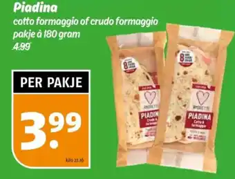 Piadina cotto formaggio, pakje à 180 gram, 4.99 PER PAKJE