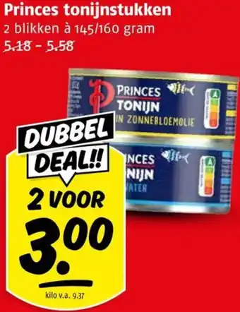 DUBBELE DEAL!! Princes tonijnstukken 2 blikken voor 3.00 euro