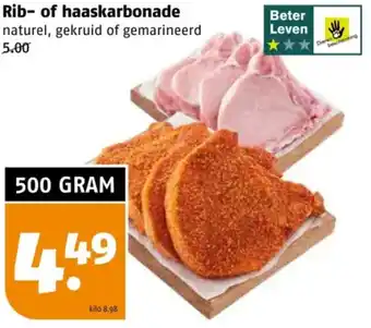 Rib- of haaskarbonade naturel, gekruid of gemarineerd 500 GRAM