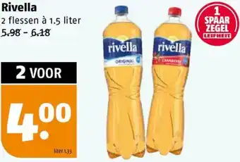 Geniet van de verfrissende smaak van Rivella met deze speciale aanbieding van 2 flessen à 1.5 liter voor slechts 5.98-6.18. Rivella is een heerlijke frisdrank met een unieke en lichte smaak, gemaakt van natuurlijke ingrediënten. Perfect voor een gezellige picknick in het park of een feestje met vrienden. Profiteer nu van deze voordelige actie en haal snel jouw voorraad Rivella in huis. Bovendien ontvang je bij aankoop van 2 flessen een spaarzegel van Leifheit, waarmee je kunt sparen voor handige keukenaccessoires. Mis deze kans niet en geniet van de verfrissende smaak van Rivella, nu extra voordelig verkrijgbaar bij jouw favoriete supermarkt.
