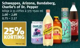 Schweppes, Arizona, Bundaberg, Charlie's of Dr. Pepper aanbieding en online acties bij Poiesz