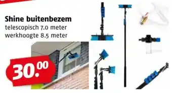 Met de Shine buitenbezem telescopisch 7.0 meter kun je moeiteloos tot een werkhoogte van 8.5 meter komen. Deze handige bezem is ideaal voor het schoonmaken van grote oppervlakken buitenshuis, zoals terrassen, opritten en tuinen. De telescopische steel zorgt ervoor dat je gemakkelijk bij moeilijk bereikbare plekken kunt komen, terwijl de stevige borstelharen ervoor zorgen dat vuil en bladeren efficiënt worden verwijderd. De Shine buitenbezem is van hoge kwaliteit en gaat lang mee, waardoor je keer op keer kunt genieten van een schoon en opgeruimd buitenterrein. Met een prijs van slechts 30.00 is deze bezem een waardevolle toevoeging aan je schoonmaakgereedschap.
